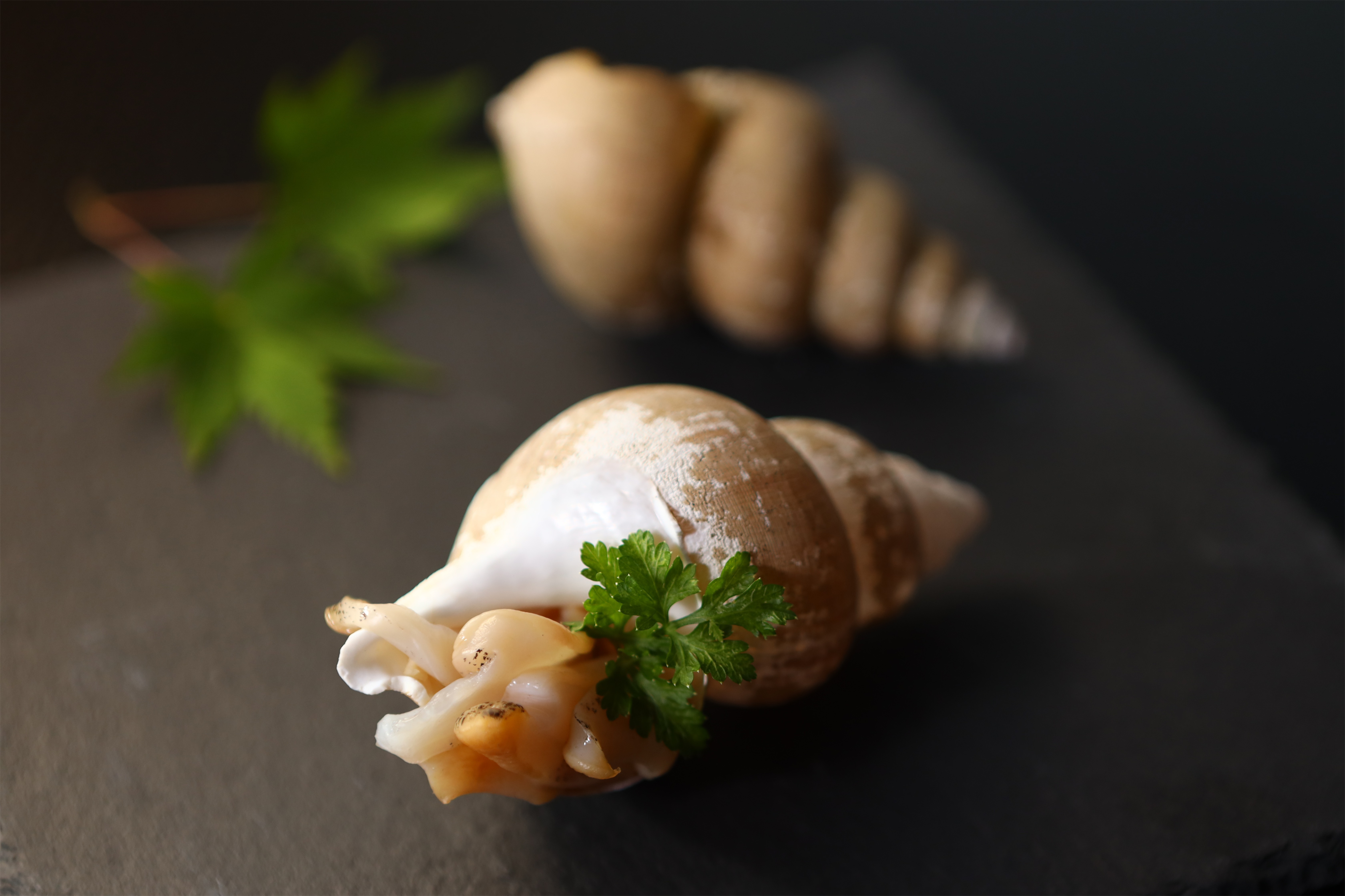 透明感のある白身と、コリコリとした食感、上品な甘みが魅力の貝。美しい海のプランクトンを食べて育った白ばい貝のまろやかな甘味と旨味が詰まってます。