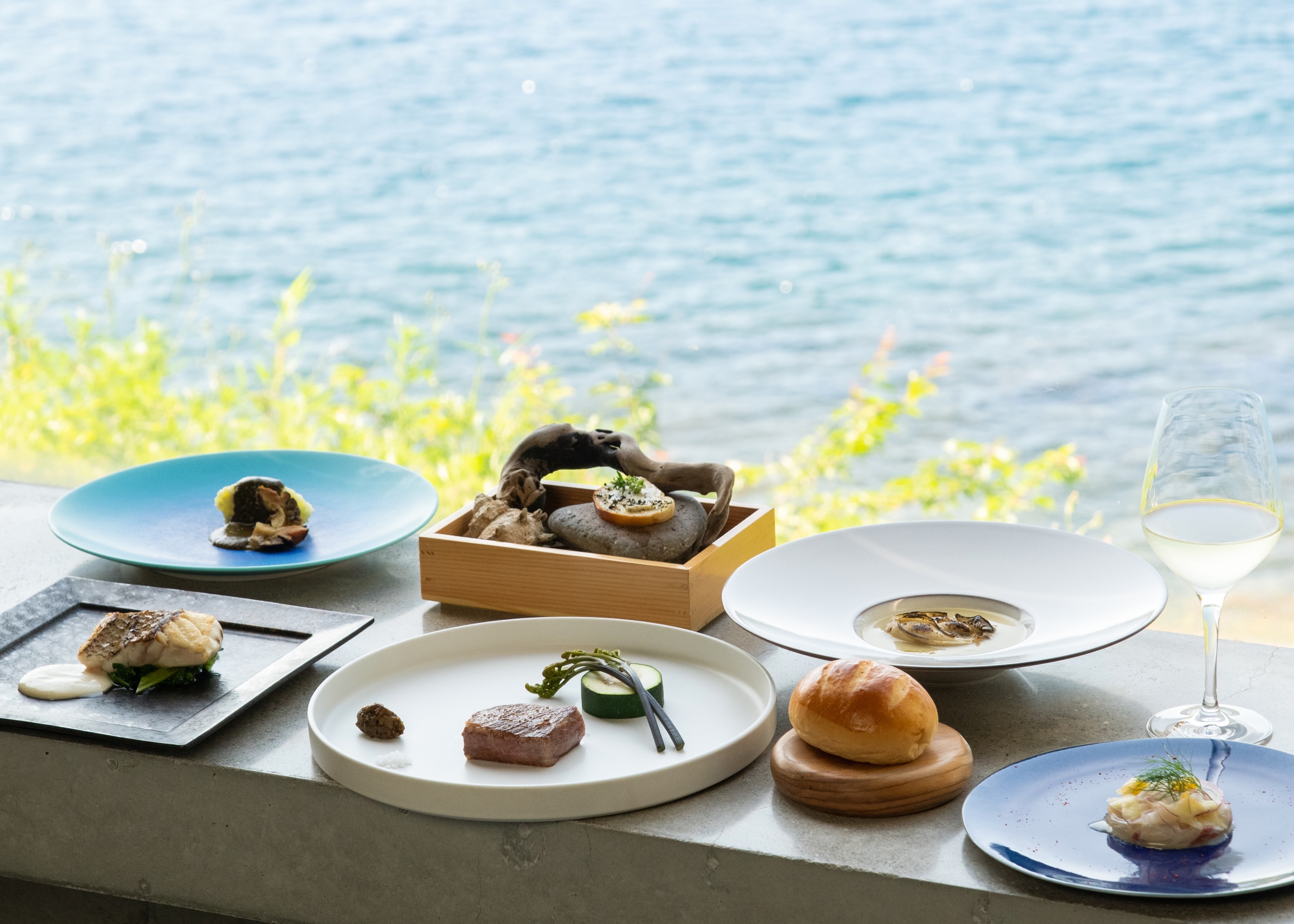 地元の春の食材をふんだんに使用した特別コース料理と、島根の地酒や、ソフトドリンクのペアリングを楽しむ夕食を提供。カルデラ湾を望む穏やかな時間の中で、春のめぶきを感じながらラグジュアリーな体験を満喫いただけます。