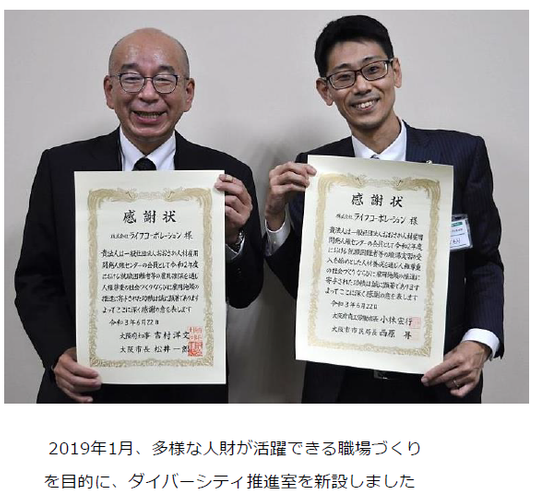 “おいしい” “ワクワク” “ハッピー” をお届けするライフコーポレーション(以下、当社)は、「一般社団法人おおさか人材雇用開発人権センター」が主催する、2020年度における障がい者雇用に関する評価・顕彰にて取り組み内容を高く評価いただき、「人材開発・養成貢献賞」と「就職マッチング賞」の2つの賞を同時に受賞いたしました。