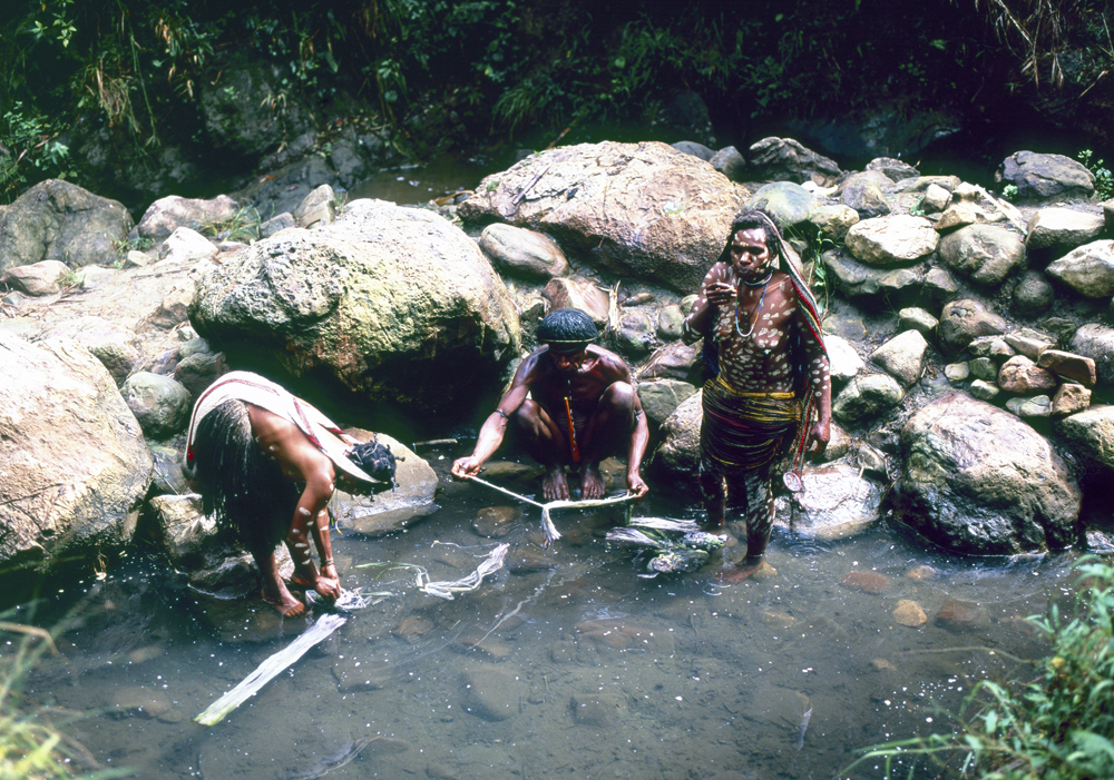 “乾季には、池の塩水にバナナの茎を浸して灰まじりの塩をつくる。しかし、訪れた季節は雨季で、バナナの茎を池に浸して繊維をもみほぐし、浅漬けのようなものを作っていた。”