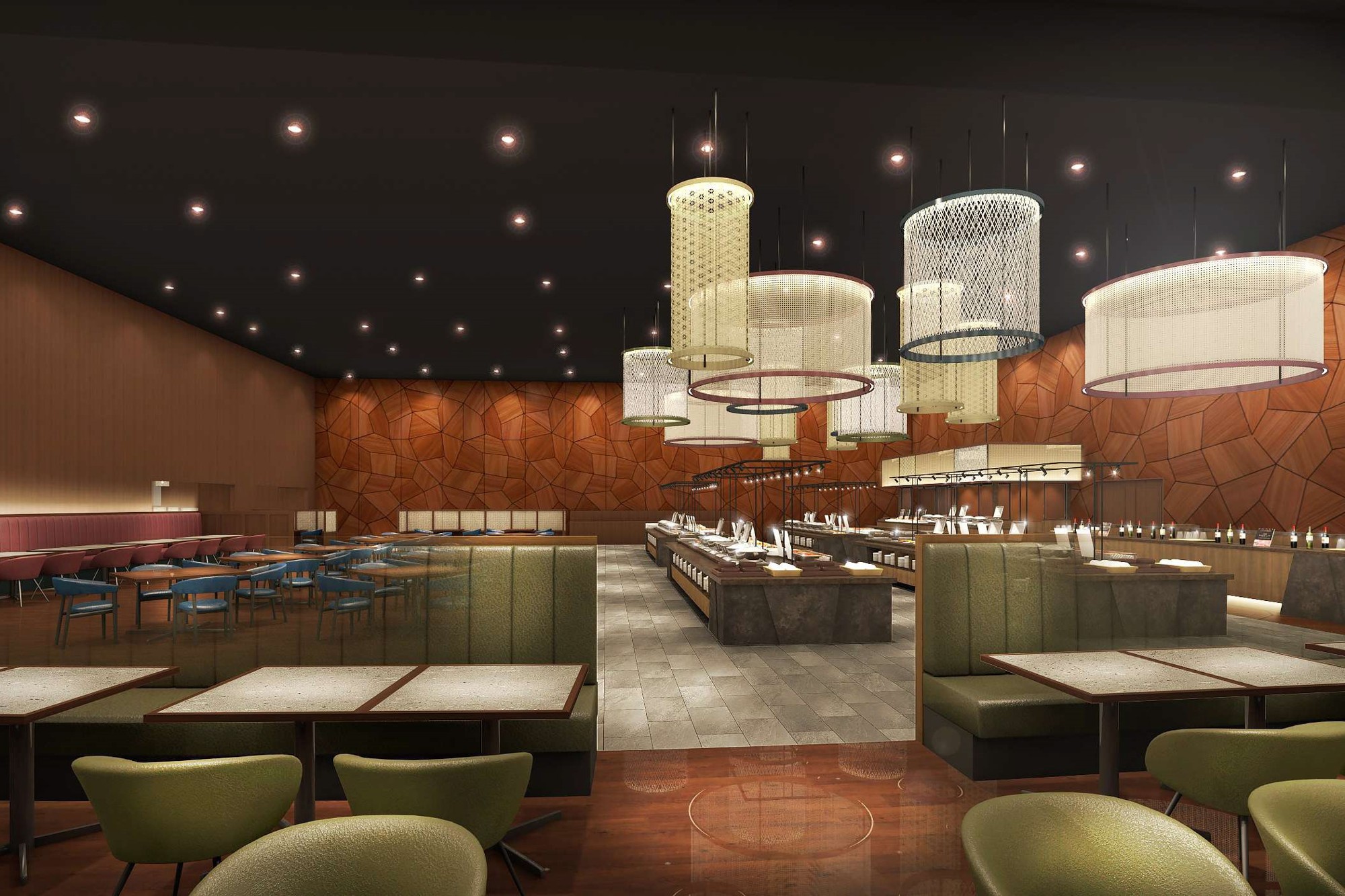 お料理は、花巻市で生産されているご当地豚を使用したローストポークや盛岡定番のソウルフード、盛岡冷麺などのご当地グルメのほか、定番料理から季節の料理、ハーゲンダッツ アイスクリームなどのデザートまで、年齢問わず好まれる豊富なメニューをご用意しております。もちろん、ライブキッチンからご提供する出来たて熱々の美味しさもご堪能いただけます。旅の醍醐味のひとつである「食事」を思う存分お楽しみください。