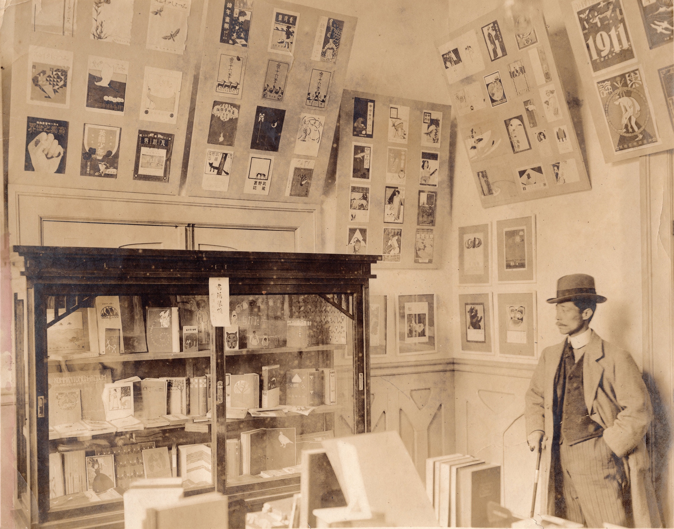 Photo.03 「書籍装幀雑誌表紙図案展覧会」会場写真(『非水アルバム帖』より) 撮影:明治45年(1912) 愛媛県美術館