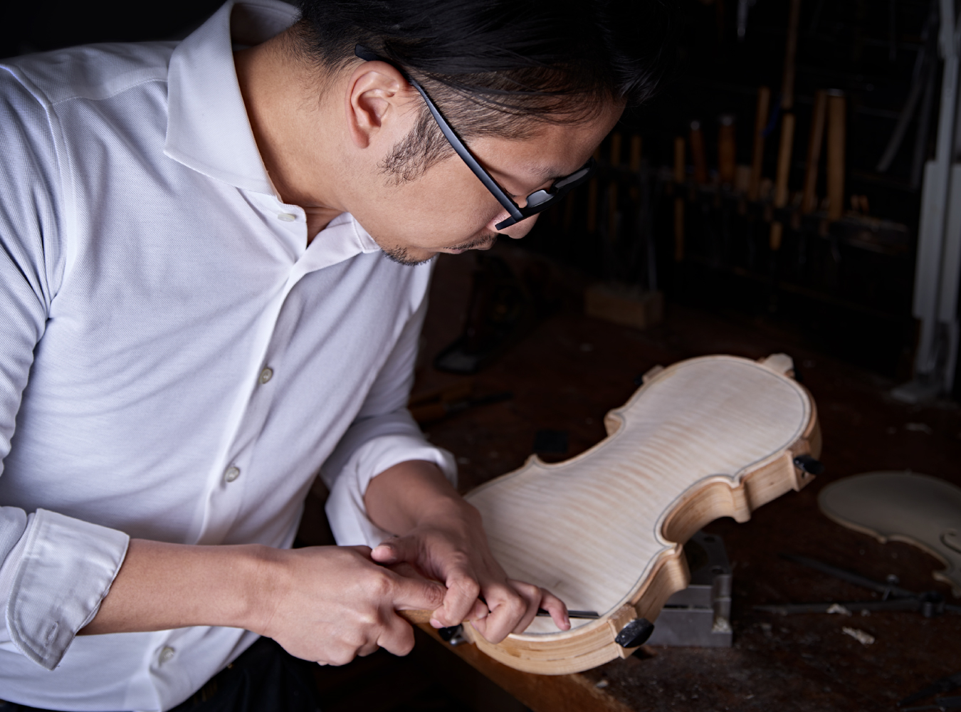 良く彫刻家や木工職人の言葉で「木の声を聴く」などと言いますが、私は木の性格をみて、話し合い、言うことを聞いてもらうイメージでしょうか。その新たな知識と経験量は、若手の私のほうが柔軟に取り入れられ、ベテランよりも分があること事もあります。おかげで最近は、この業界の大御所と言われる世代の人達と集まって、対等に意見交換をする日々です。 日本人として、イタリア人製作家に技術を還元し貢献できる事をとても嬉しく思っています。そして、その成果の一つとして、第一線で活躍するバイオリニストの方々が私の楽器を使ってくれています。古い楽器ほど重宝される業界において、とても嬉しいことです。