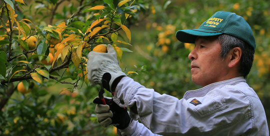 「山の神のもと まじめにゆずづくり」をモットーに、小さな集落で「千年生きる村」を目指し、化学肥料や農薬を使わずに「銀ノ柚子(ぎんのゆず)」を大切に育てています。「地域を守るためには産業が必要だ。それがゆずだった」という、農業生産法人の濱砂社長の覚悟と信念に感銘を受けたことが商品開発のきっかけ。「銀ノ柚子(ぎんのゆず)」は、持続可能な地域未来を託されたゆずなのです。