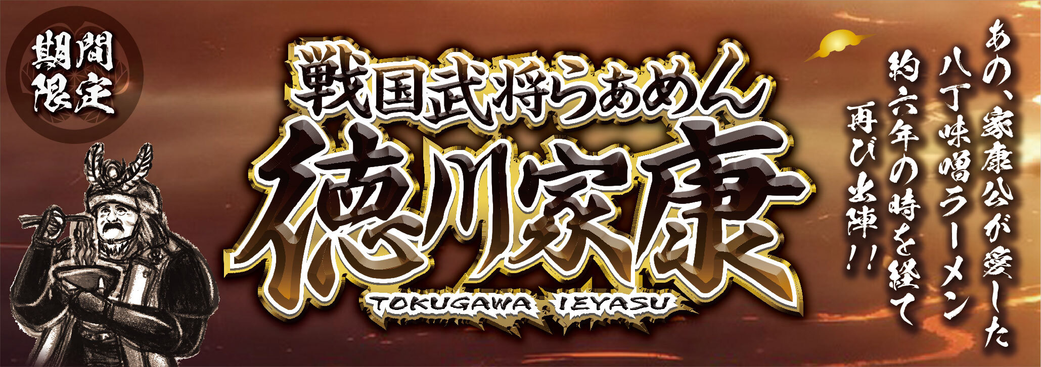 約6年の時を経て、再び出陣する家康公のラーメンをこの機会に是非、お召し上がりください。