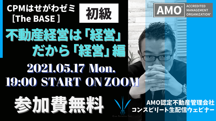 株式会社コンスピリート(所在地:東京都目黒区自由が丘、代表取締役:村上幸生)は5月17日(月)19時~、現在不動産を保有しているオーナー様や、今後不動産経営を始めたいと考えている、不動産経営に興味がある皆さまに向けて、不動産経営の初級編について無料ウェビナーを開催します。