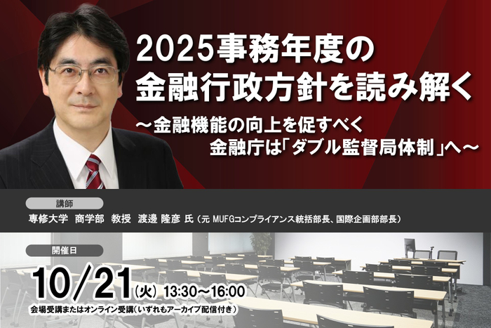 10月21日開催 「2025事務年度の金融行政方針を読み解く」❘ セミナーインフォ
