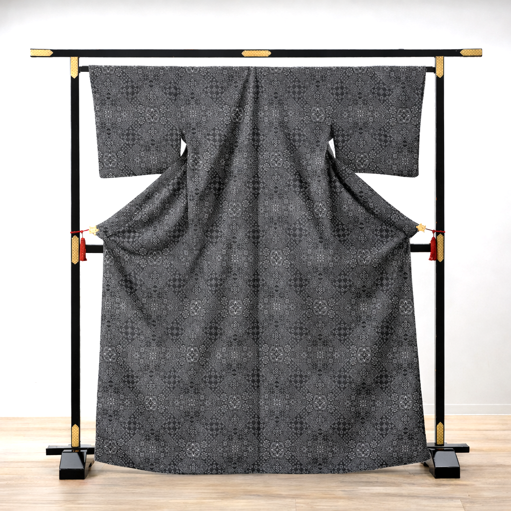 緻密なドット(絣)で構成されるモザイク柄は、12マルキという極限まで精緻な技法だからこそ成立する意匠であり、技術・時間・人材のすべてが揃わなければ再現できない表現です。