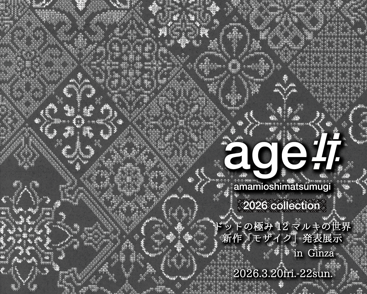 世界でもほとんど目にすることのできない「12マルキ」の現在地を、銀座で公開! 本場奄美大島紬NEXTプロジェクト「age!!」 2026年新作「モザイク」発表展示会開催