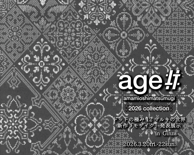 本場奄美大島紬協同組合の若手職人たちによる本場奄美大島紬NEXTプロジェクトは、ブランド「age!!」の2026年新作として、12マルキ大島紬による新作「モザイク」を発表いたします。