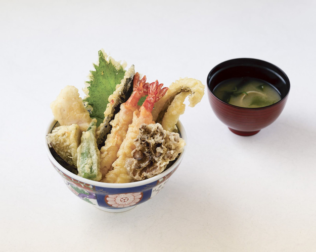 ※天丼は、ごはん大盛り無料、味噌汁おかわり無料、ゆず大根、のり天かす、本枯節花鰹もお好きなだけどうぞ。