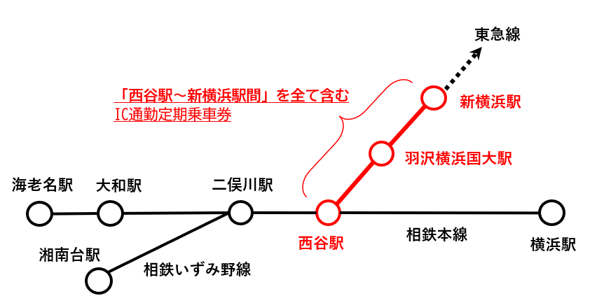 ・定期区間に「西谷駅~新横浜駅」または「西谷駅~羽沢横浜国大駅~JR線区間」を全て含む