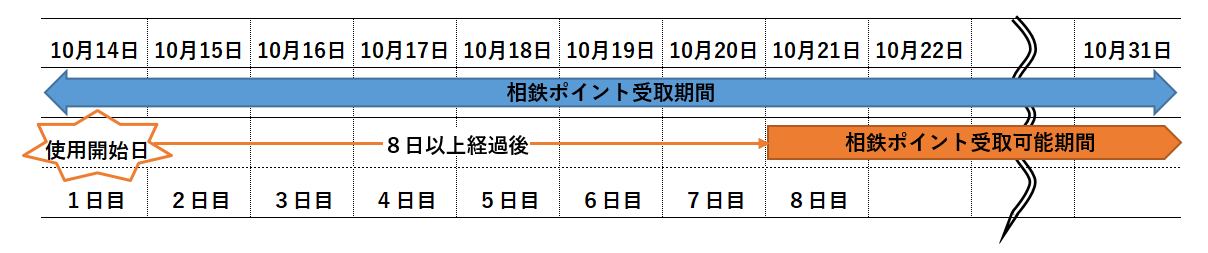 <例>10月14日に使用開始の定期券の場合、10月21日からポイントの受け取りが可能となります。