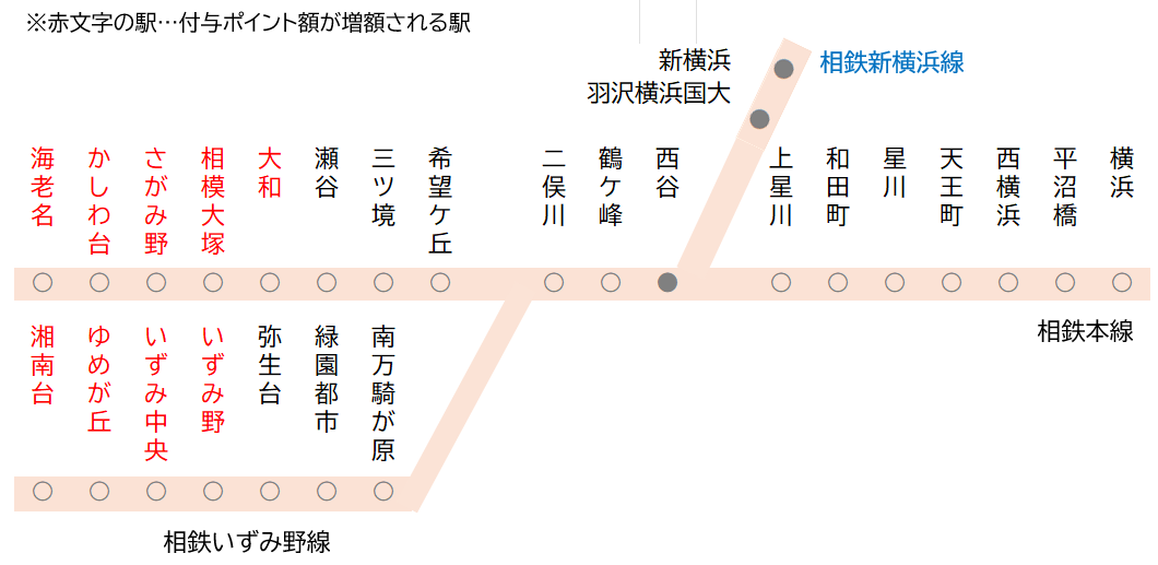 ※「相鉄ポイント」は、相鉄ジョイナスやそうてつローゼンなどの相鉄グループの各商業施設で、1ポイン