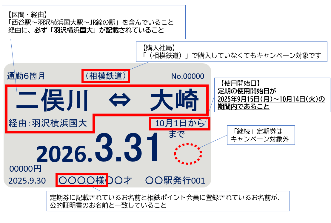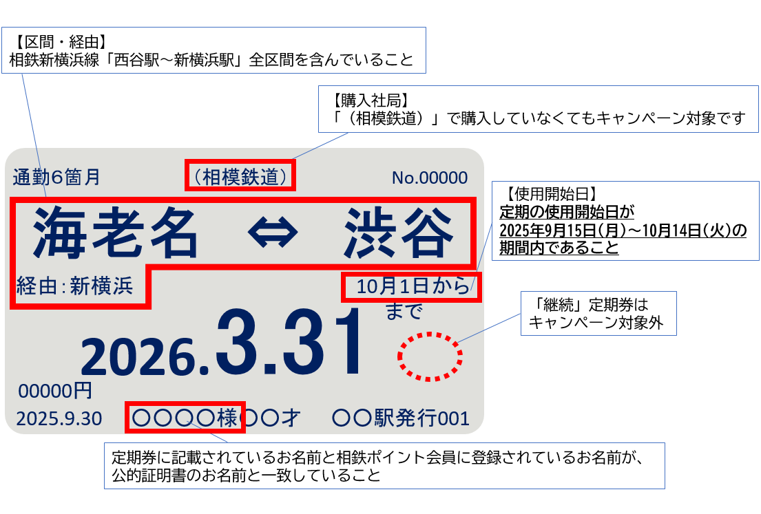 ※「羽沢横浜国大駅」を経由していない定期券の場合は、キャンペーン対象外となります