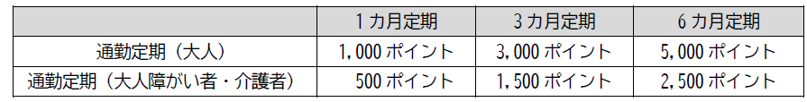 ※9月24日以前に使用開始の定期券の場合、10月1日以降にポイントの受け取りが可能となります。