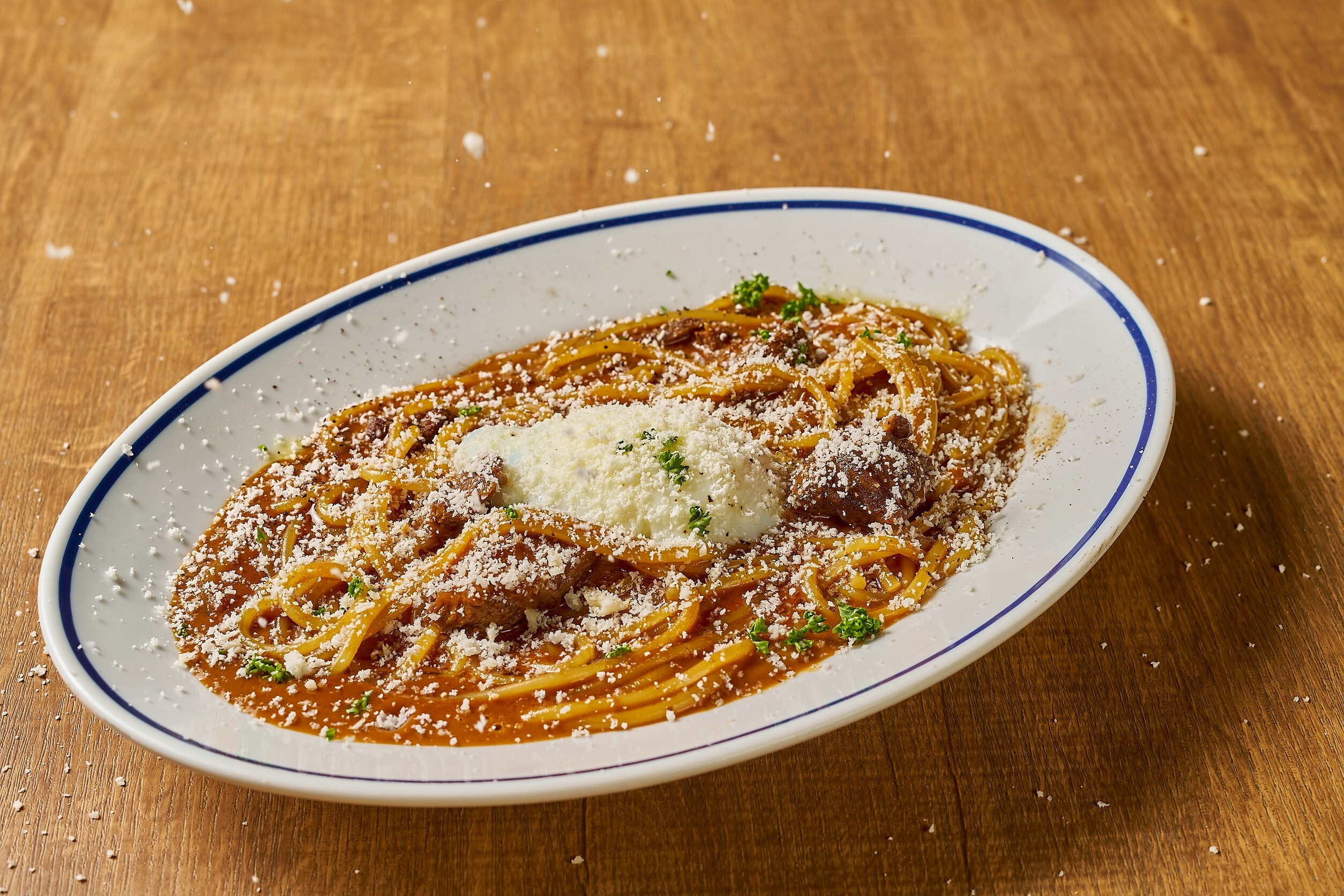 じっくり煮込んだ牛すじの旨みに、香り高いチーズを“お客様の目の前で”たっぷり削りかけます。仕上げの温泉卵を崩せば、とろける黄身と濃厚ソースが絡み合う、至福のひと皿!五感で味わう、特別な“ごちそうパスタ”をぜひお楽しみください!