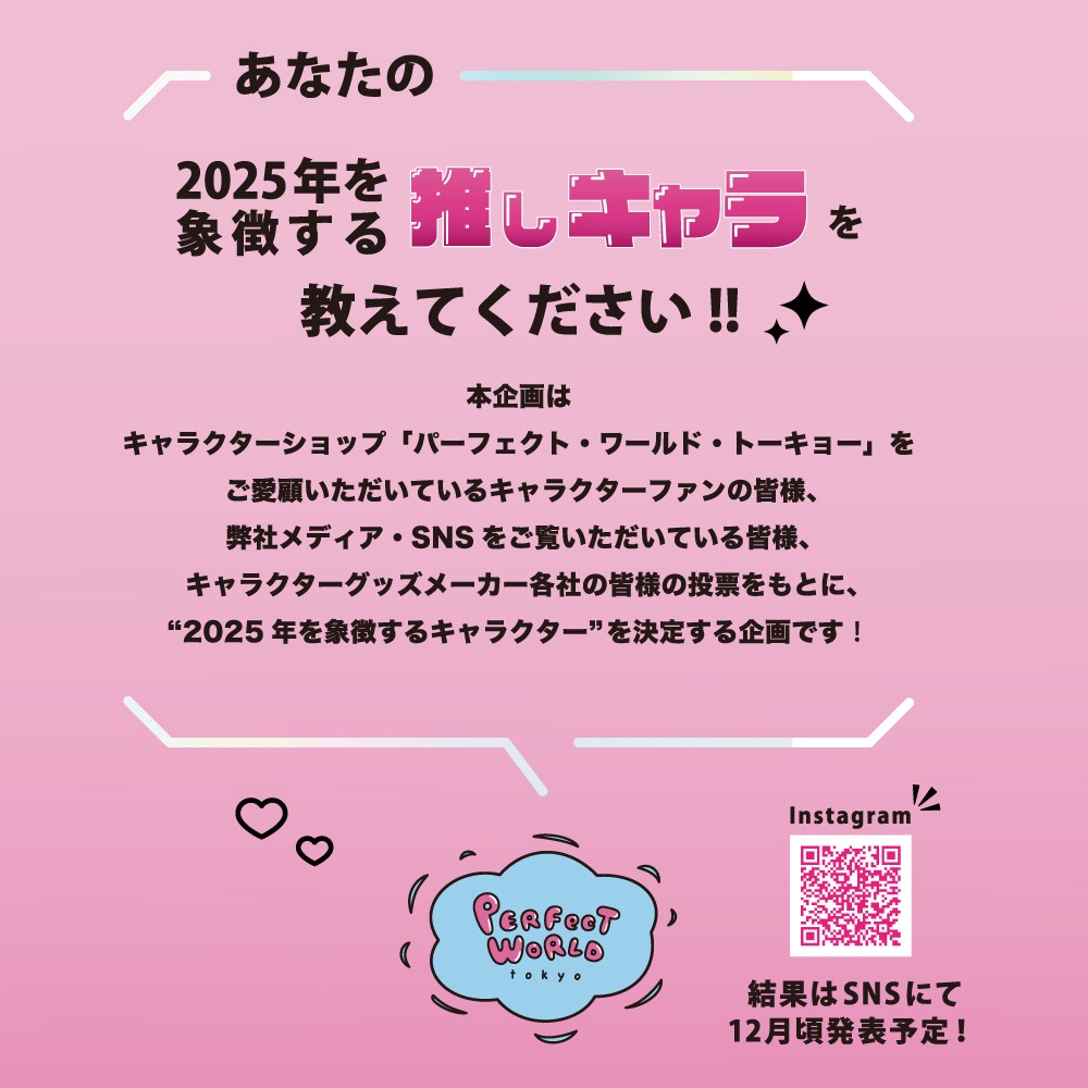 単なる人気投票ではなく、キャラクターを心から愛するファンの想いと、キャラクターに関わる企業担当者(いつも取材させていただいている方にも、もちろん私たちも参加します!)のリアルな視点をもとに選出する、新しいかたちの「私たち的キャラクターアワード」になったら楽しいな、と思い考えた企画です。