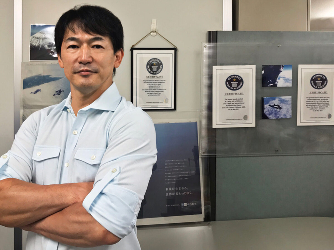 ウイングスーツ・フライングのギネスレコードがあるということを知って、ギネスへの挑戦を始め、5年間でギネス世界記録を6度達成することが出来ました。現在保持している記録は、水平直線飛行距離26.9km、最高飛行速度時速363km、3D総合飛行距離28.707km、68名でのフォーメーション記録の4つ。