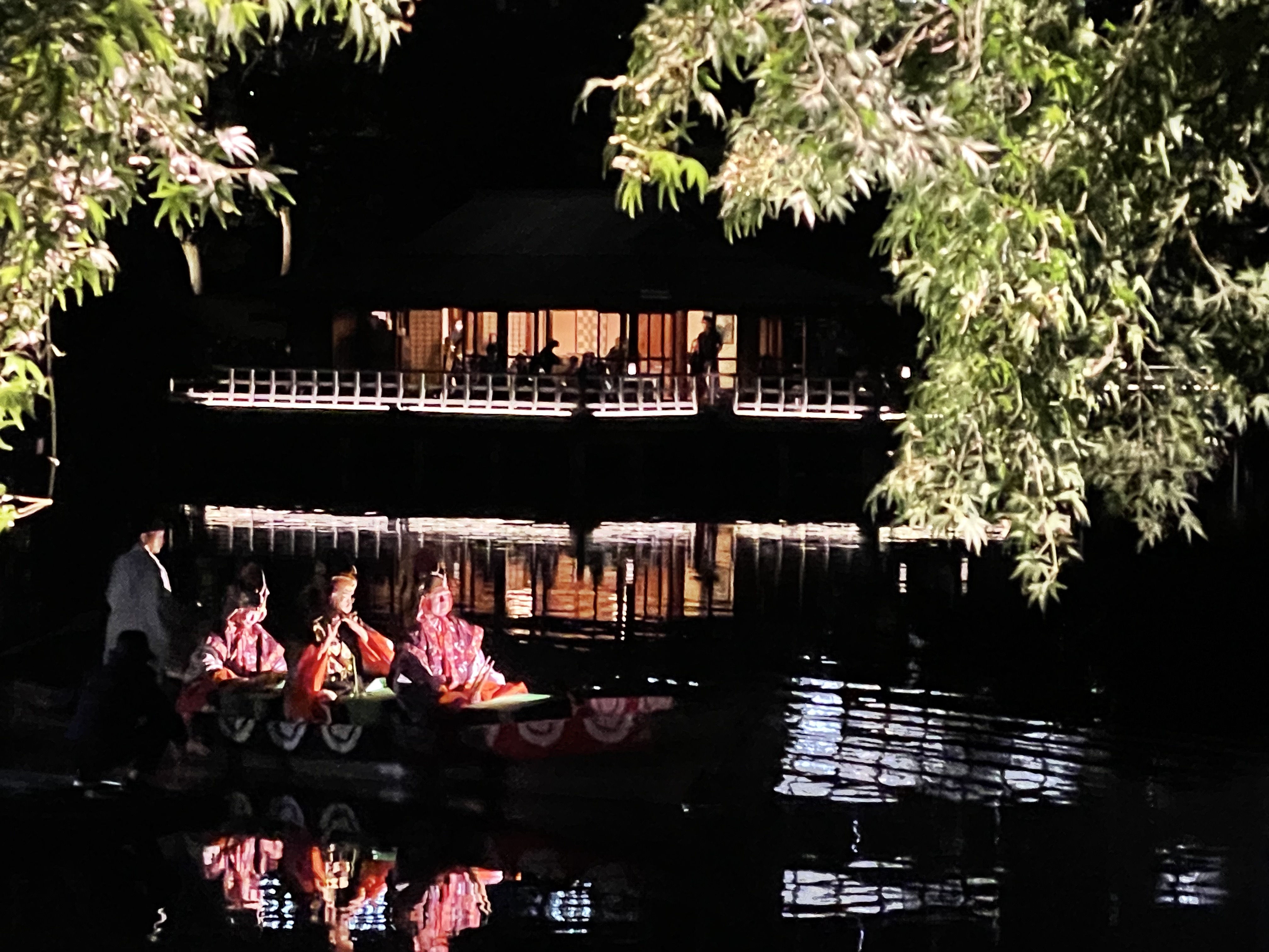 和船に小編成の楽人を乗せ、かつて将軍が園内で楽しんだと言われる「船上雅楽」を再現し、その優雅な姿をご観覧いただけます。