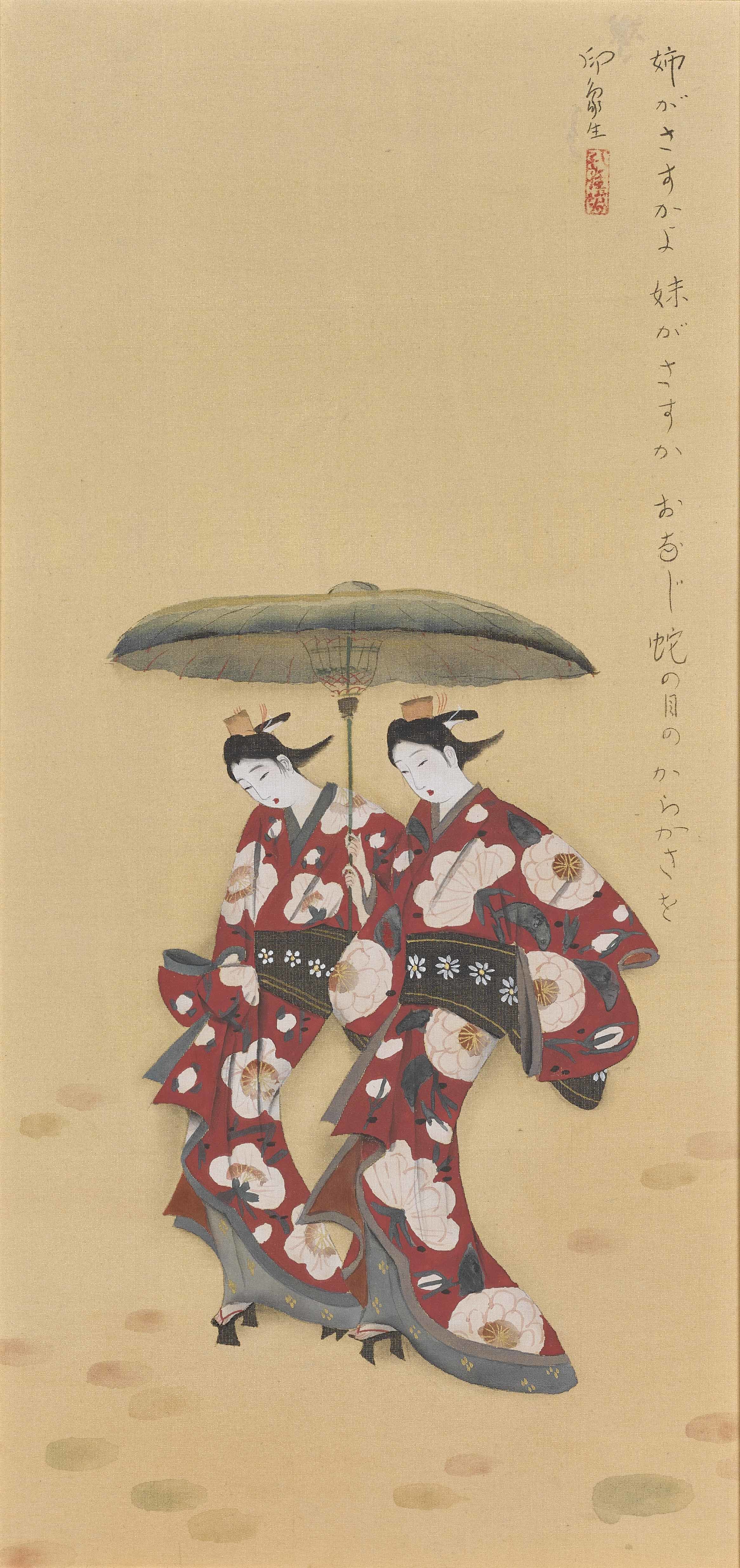 ●京の旦那衆の間で流行った小唄を題材に、肉筆浮世絵風に描いた大正時代の《小唄十二月》。