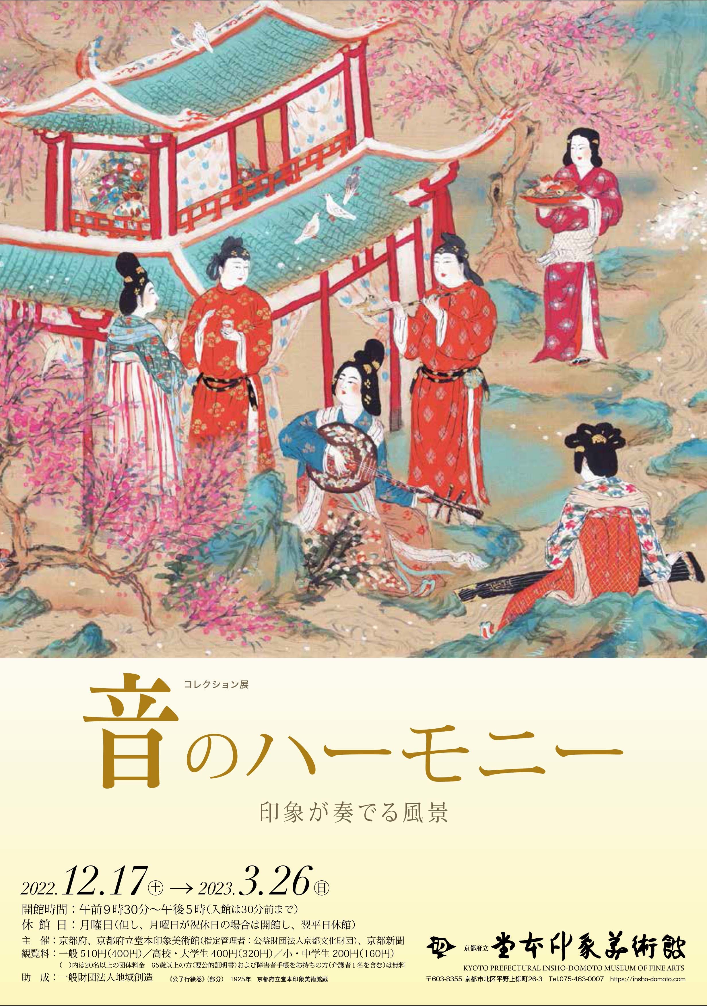 京都府立堂本印象美術館(所在地: https://insho-domoto.com/ )は、コレクション展「音のハーモニー -印象が奏でる風景-」を、会期:2022年12月17日(土)~2023年3月26日(日)にて開催いたします。