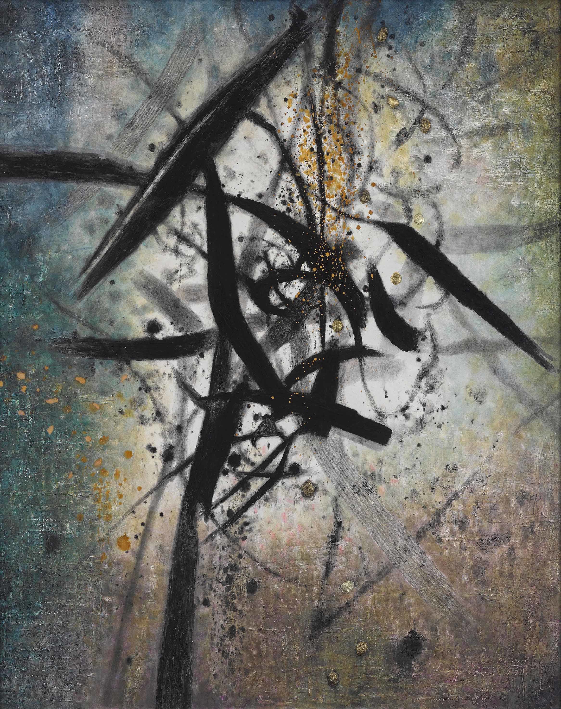 ●音が交錯しているさまを黒色の線の濃淡と色彩のみで表現した印象の抽象画の代表作《交響》