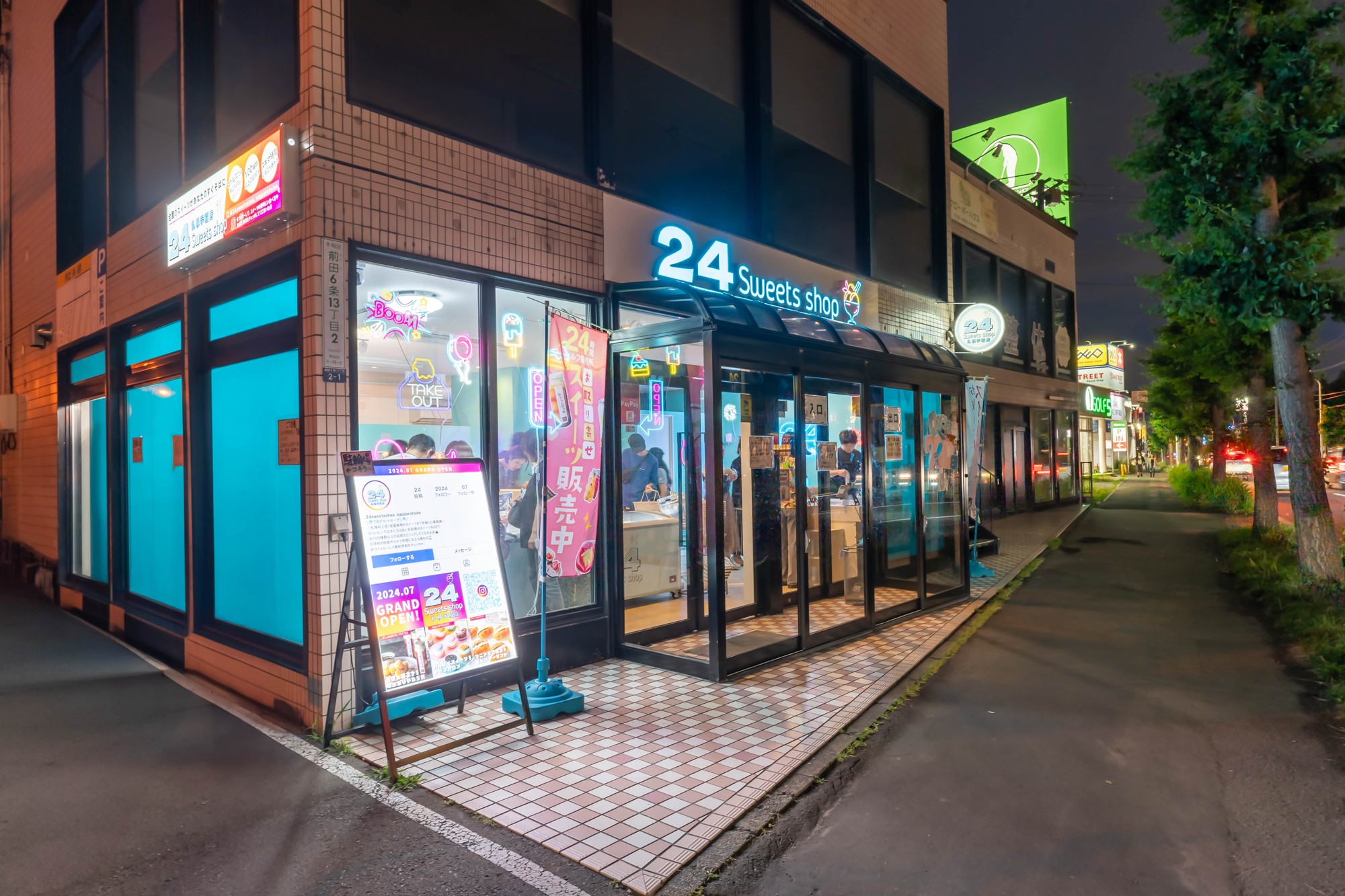 「24スイーツショップ札幌手稲店」は、クウカン株式会社が企画・運営する、24時間営業の無人スイーツセレクトショップです。