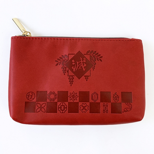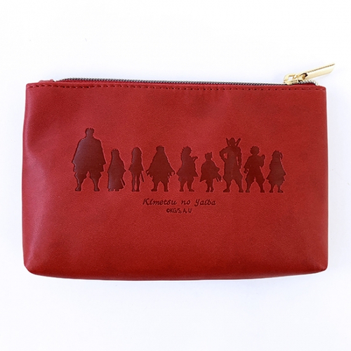 2つ目は、こちらのワインレッド色のレザー風ポーチです。柱の9人を連想させるモチーフが下部にデザインされていてとってもオシャレですよね!サイズは、11×17.3×3.5㎝ですよ。