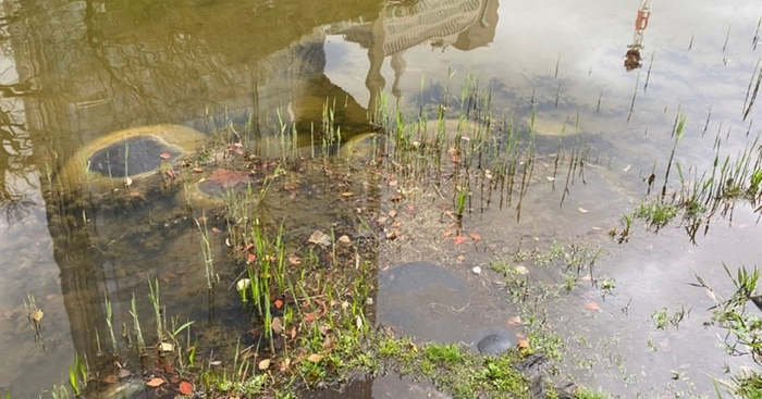 ②久保寛子氏《ハイヌウェレの彫像》(会場:草地広場)と《やさしい手》(会場:心字池)