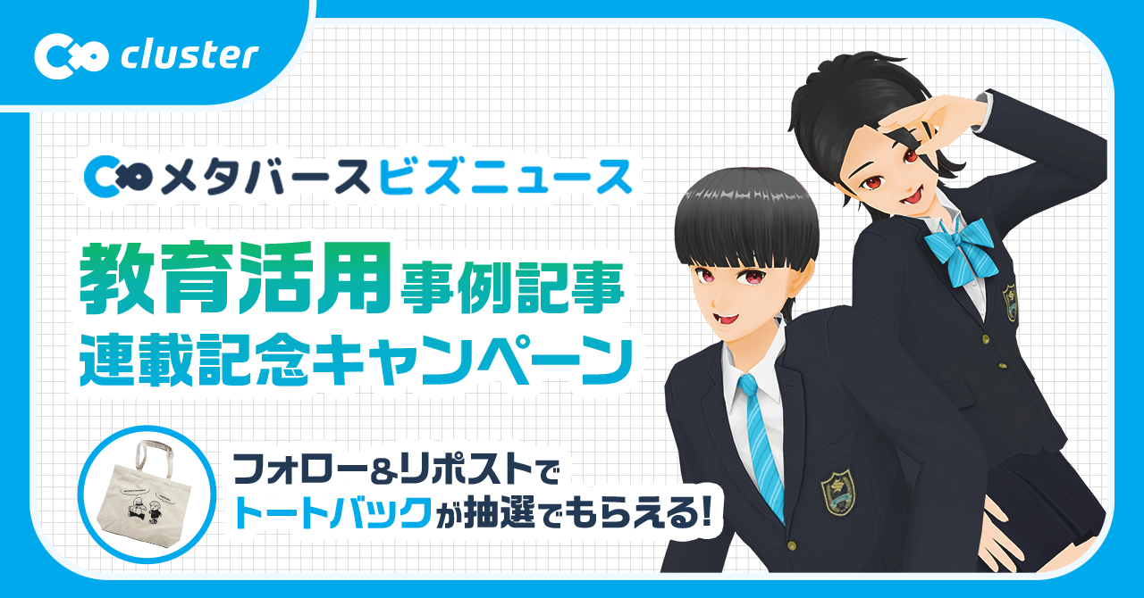 それを記念して「メタバースビズニュース 教育事例記事 連載スタート 記念キャンペーン」を開催いたします。クラスター株式会社公式Xアカウントをフォローし、対象ポストをリポストすると、抽選で10名様に賞品をプレゼントいたします。ぜひご応募ください。