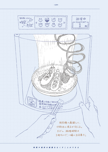 ジャスト・イン・タイム料理で、時間や場所の制限がなく、無駄を省き、いつでもどこでも食べられる未来を想像する。