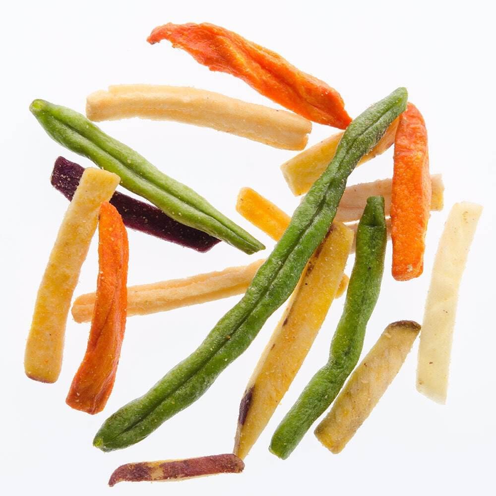 ななぞー:野菜といえばもう1つ!我が家ではほぼ野菜だと思っているお菓子があります。それが、「久世福のなかなか減らないやみつき あられ&野菜スティック」。さつまいも、インゲン、ニンジンなど6種類の野菜スティックが入っているカラフルなスナック菓子です。