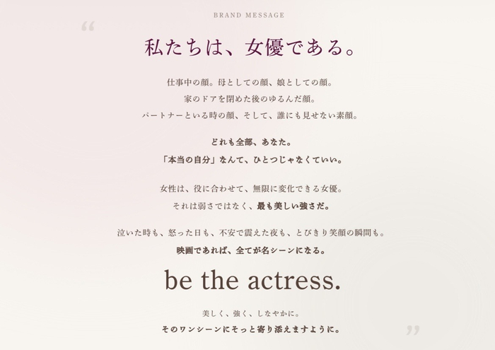 「be the actress」という決意を込めた名前に進化し、より深く、女性たちの日常の「ワンシーン」にコミットしていきます。
