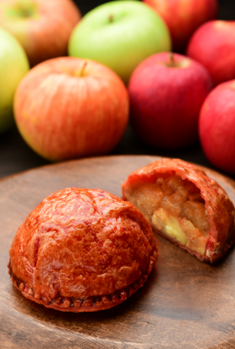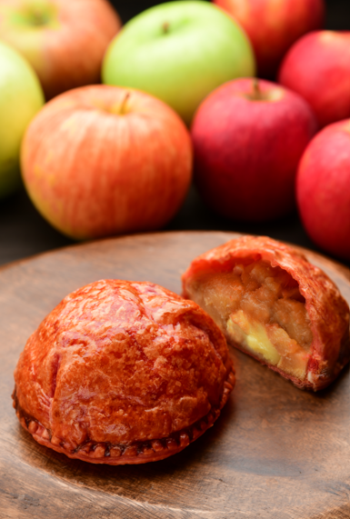 Adam's awesome PIEが誇る青果目利きの技術で、その時期に最も美味しいりんごを厳選。10月は長野県安曇野産「恋空」からスタートし、秋以降は「紅玉」「ふじ」など、季節ごとに異なる品種を使用します。酸味や甘みのバランスが、毎回違った味わいを生み出します。