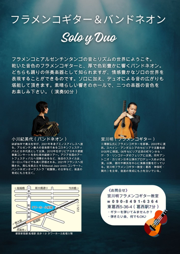宮川明(フラメンコギター)&小川紀美代(バンドネオン)のソロとデュオコンサート開催!