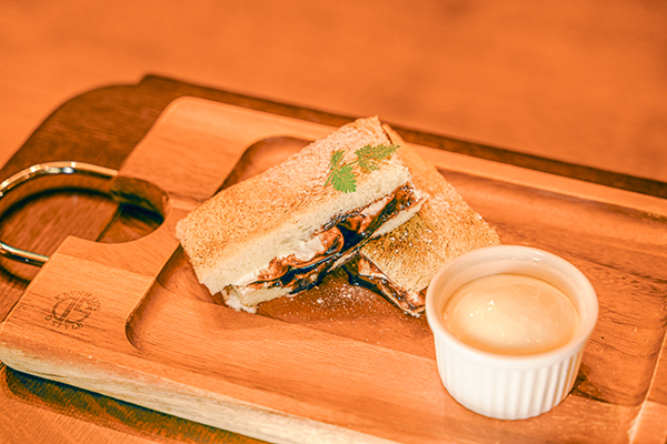 とろりととろけた2種類のチーズとホワイトソースにベーコンの旨味がひろがるホットサンドです。
