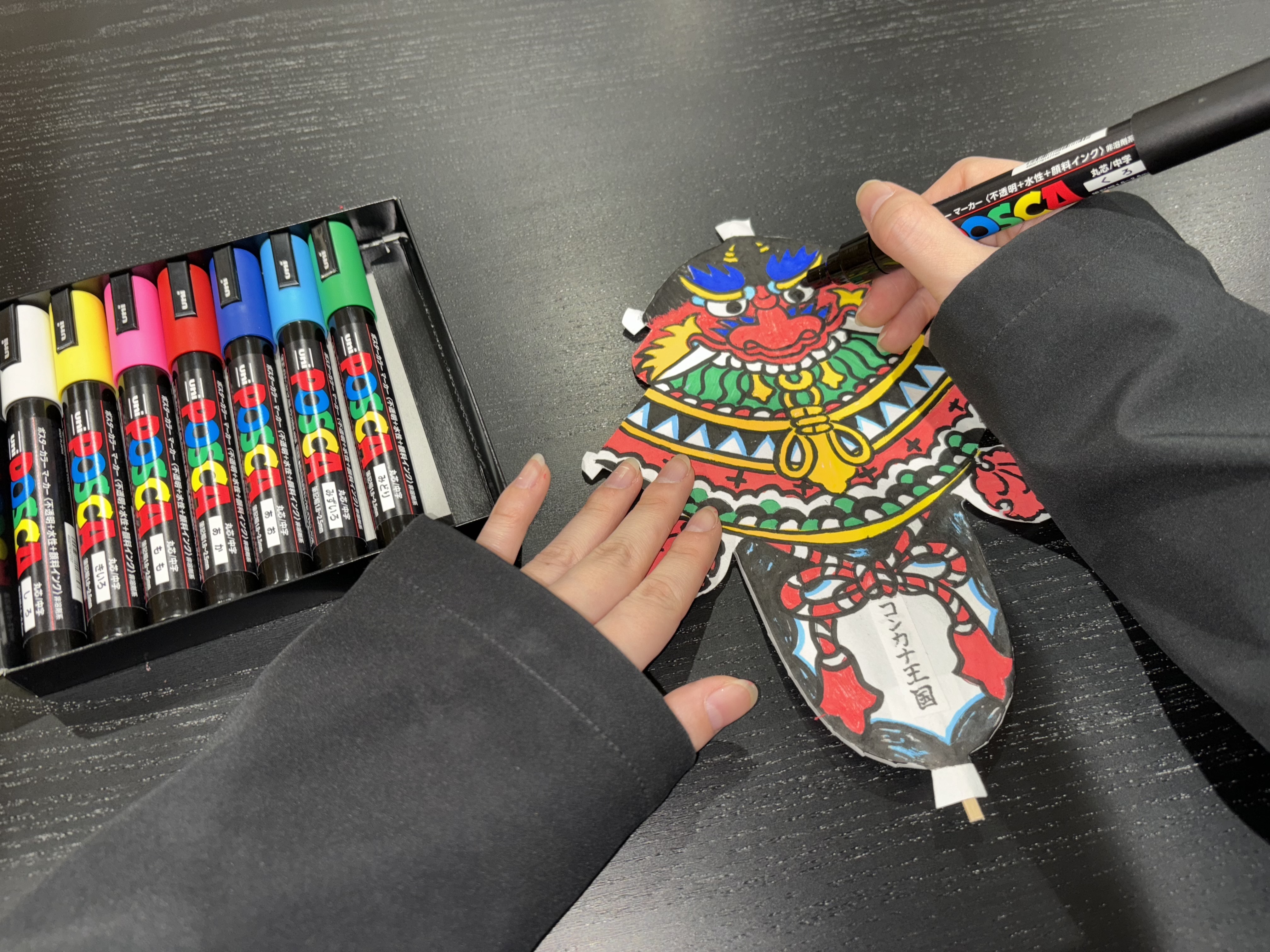既存の枠にとらわれない世界に一つだけのオリジナルばらもん凧を楽しみながら作っていただけるよう、お好きな色で絵付けができる体験をご用意いたしました。下の空いているスペースに自由に自分で名前をデザインに加えられるようにもしているので、五島旅行の思い出の品やお土産としてもぴったりです。自分で作れる縁起の良い魔除け凧、ばらもん凧の絵付け体験をお楽しみください。(※作ったばらもん凧はお持ち帰りいただけます)