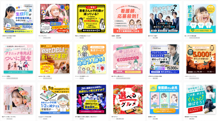 バナーデザインは業種・目的・訴求ポイントによって表現方法が大きく異なるため、一度に多様なデザインを比較できる環境は、制作する側にとって大きなメリットがあります。
