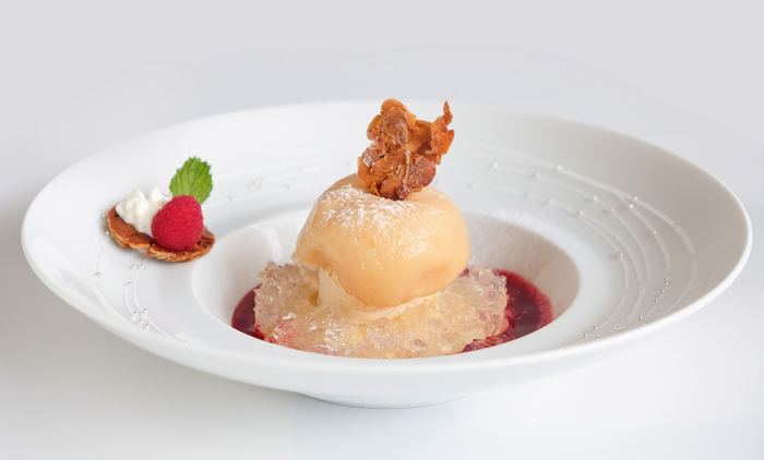 【ひらまつレストラン】福島県の完熟桃を使ったデザートの提供をスタート!順番に旬を迎える約15種類の白桃を使用 ~ブラッスリー ポール・ボキューズ~