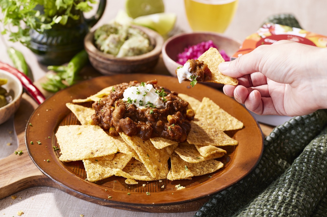 野菜をMOTTOらしく国産とうもろこしの粒と甘さでアクセントをつけたチリコンカンカレーはごはんはもちろん、とろみのあるテクスチャーなのでトルティーヤチップスにかけてナチョスにするのもおすすめです。その他ジャガイモにかけてチーズをふったりなどアレンジが広がる味わいになっています。もちろん、そのまま食べても。