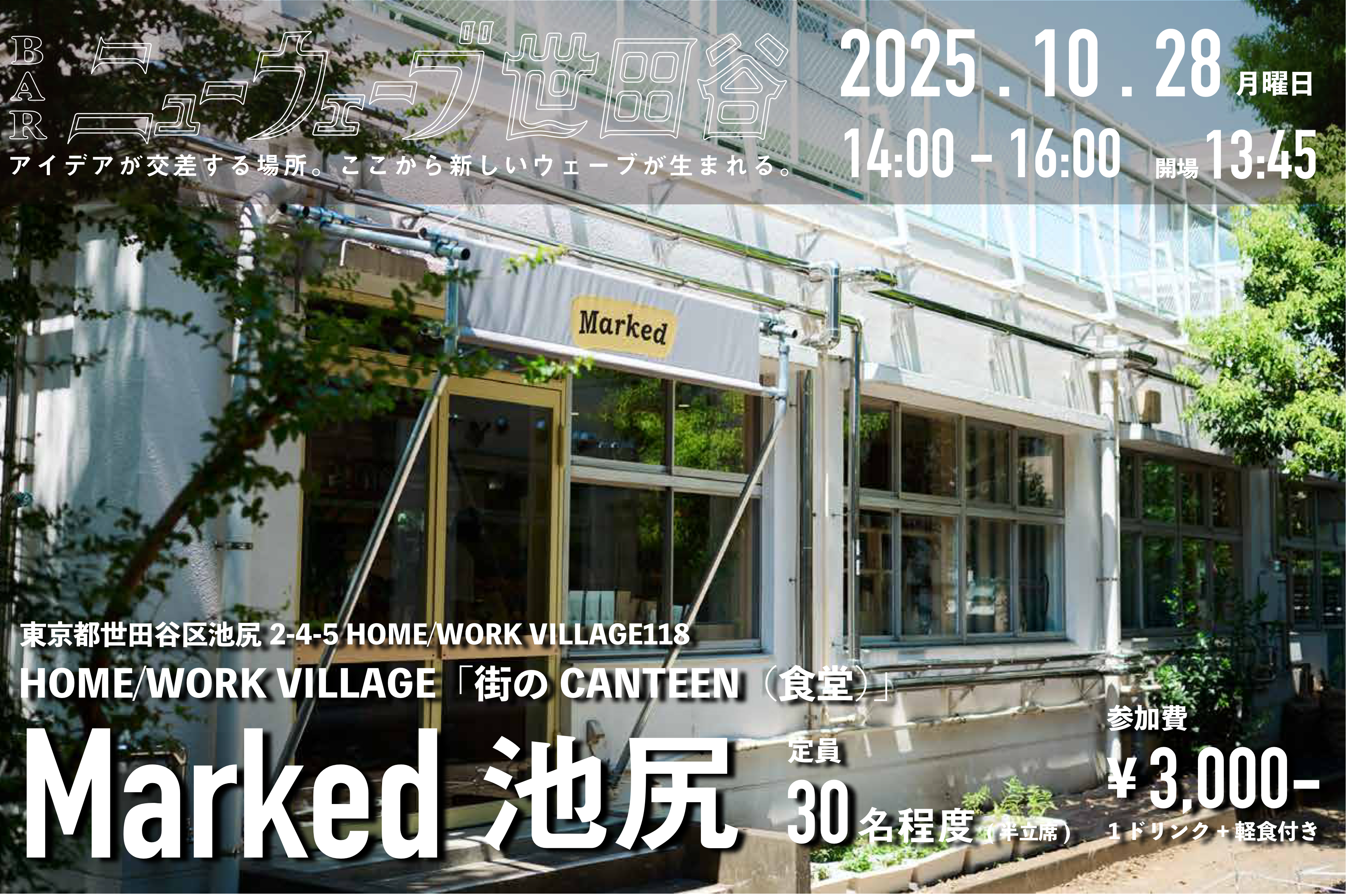 会場:Marked 池尻(東京都世田谷区池尻2-4-5 HOME/WORK VILLAGE118)