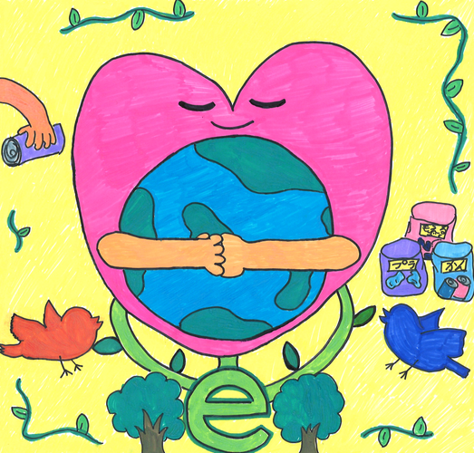 受賞の決め手について島田氏は「山田さんの作品は、優しい笑顔のハートが地球を抱きしめています。そこに山田さんのあたたかいメッセージを感じました。ゴミの分別など、身近なところから取り組んでいこうという思いにも共感します。齋藤さんの作品は、時計の針が描かれています。環境問題が悪化して終末時計の針が進むと地球が壊れてしまう、大変な状況ですが、危機感を煽るだけでなく、優しさやあたたかさも感じられるデザインです。私たちの力でなんとか食い止めようという思い、様々な生き物が描かれている多様性への視線もあって選出しました」と評価した。