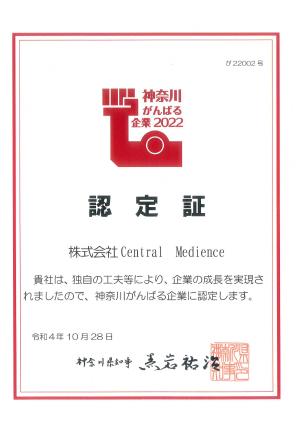 ヘルスケアをサポートする事業を展開する株式会社Central Medience(本社:神奈川県横浜市、代表取締役:中川隆太郎、以下「当社」)は、今年度の「神奈川がんばる企業2022」に認定されましたのでお知らせいたします。