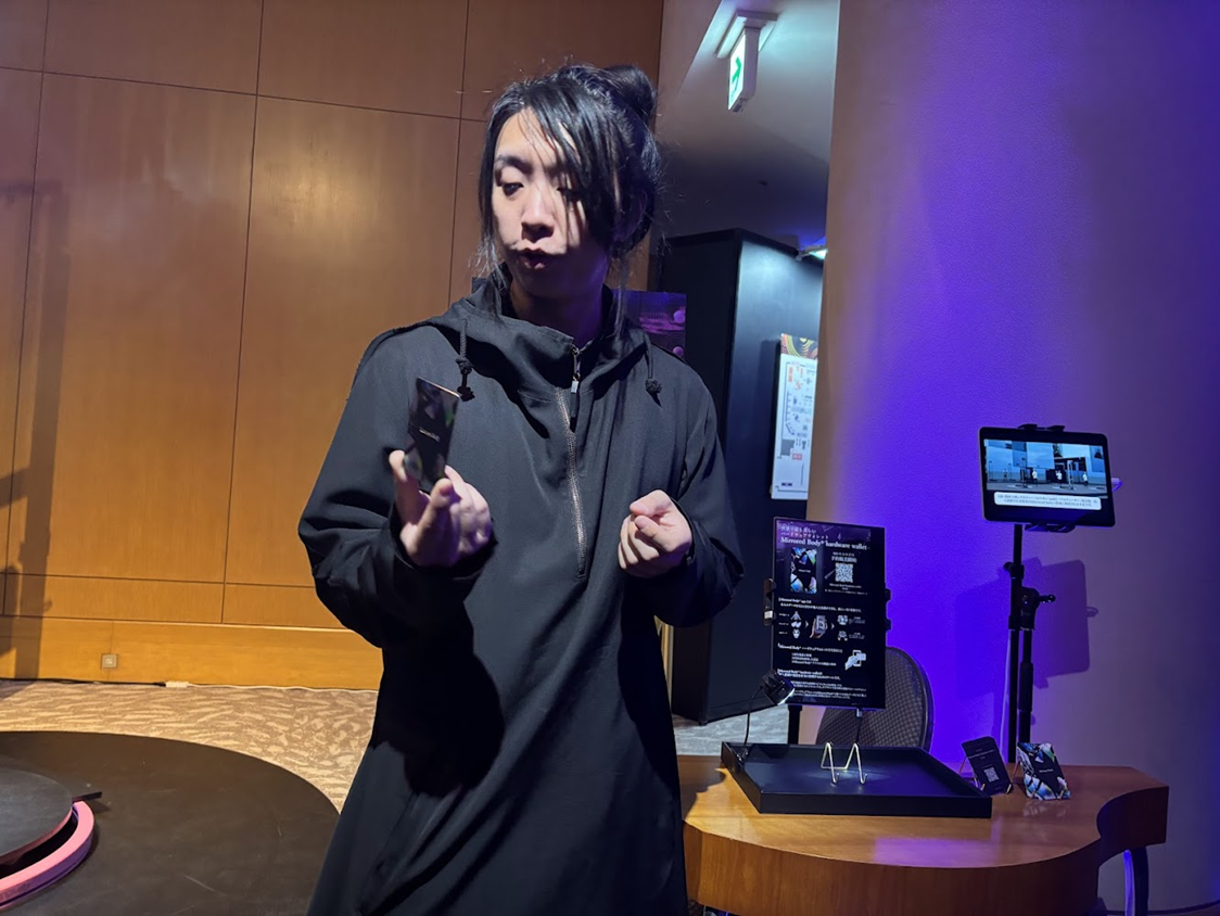 落合氏がデザインした新しい「Mirrored Body hardware wallet」も発表しました。美しさだけでなく、デジタル上の資産を守る物理的な鍵として機能する、セキュリティを兼ね備えています。登壇当日の11月29日より先行発売が開始されるとともに、特別な特典を付属したスペシャルパッケージの販売も予告されました。落合氏は「このハードウェアウォレットは、Mirrored Body®の進化を支援し、個人の情報を安全に管理するための重要なツールです。」と述べました。