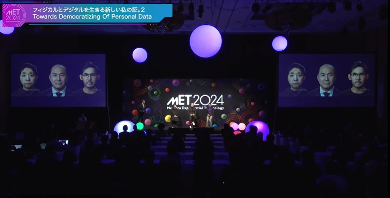 MET2024では「Mirrored Body®」の様々な事例が提案されました。落合氏は「母子手帳の情報からSNS上の人間関係まですべてを記録した“第2の自分”のデジタルアバターと、会話したり、相談したりする時代が来ると予想しています。『個人データの民主化』という高い目標に向けて、共に歩むパートナーを募っています。」と述べました。