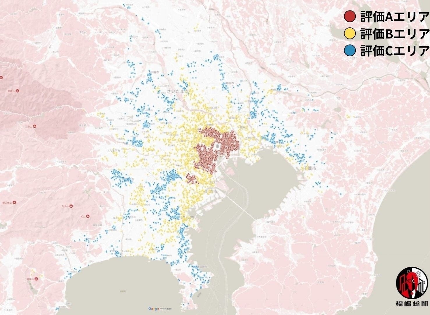 一方で、神奈川県・埼玉県・千葉県の各エリアは、川崎市中原区を除けば評価Bまたは評価Cにとどまりました。