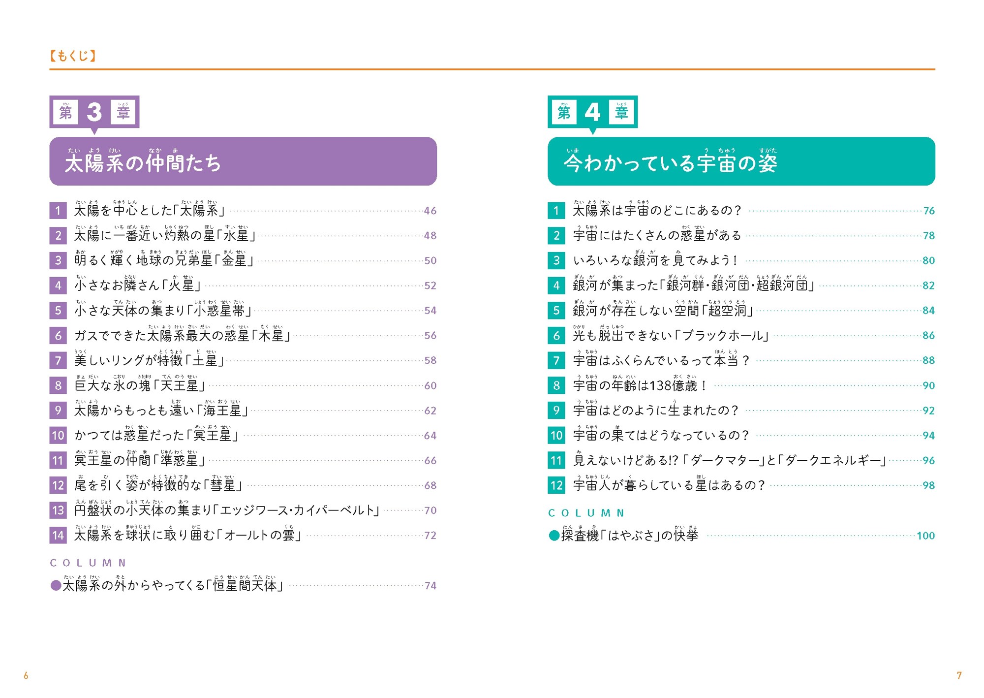 「宇宙はどのように生まれたのか」をはじめ、宇宙の構造やさまざまな天体、不思議な現象、そして私たちが暮らす地球や太陽系のことまで。最新の研究結果をもとに、豊富なイラストや図解を用いてわかりやすく解説します。