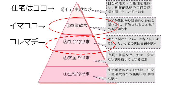 ・自己実現欲求:創造的活動がしたい、社会に貢献したい←住宅はココ