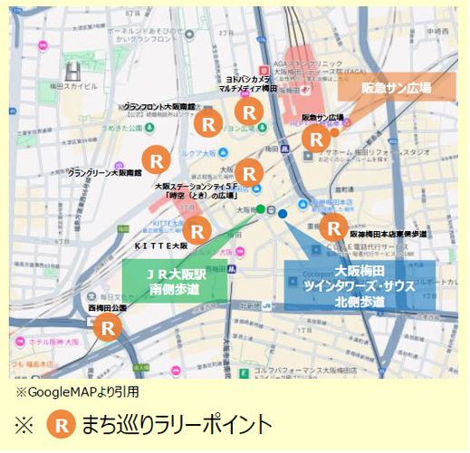 内容:各所に設置されたラリーポイントを巡りながら、梅田エリア内のまち歩きを楽しめます。